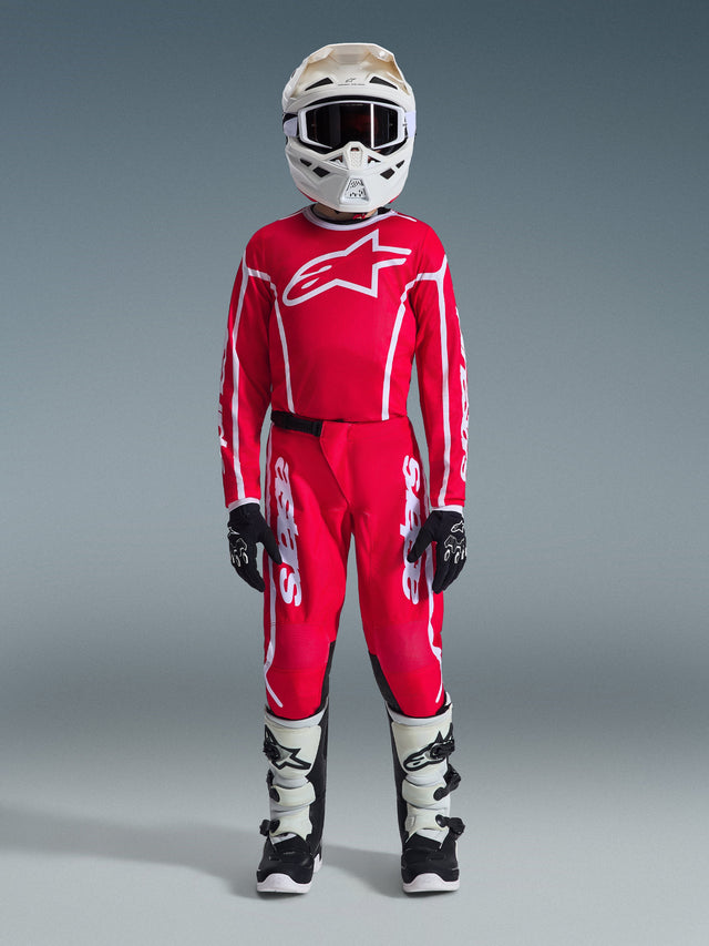 The Youth Fluid line offers recreational MX riders gear with optimal MX technology that leverages the key construction features of the Supertech, Techstar, and Racer lines for a total performance look and feel that is optimized for comfort and riding functionality for young riders. Developed and tested on some of the toughest terrains, the sport-fit Youth Fluid gear is ideal for many forms of off-road riding and provides the most relaxed fit of all the MX26 gear lines. The Youth Fluid line has a more athletic fit including more fitted sleeves and the size range has been expanded to offer sizing for riders ages 5 to 15.