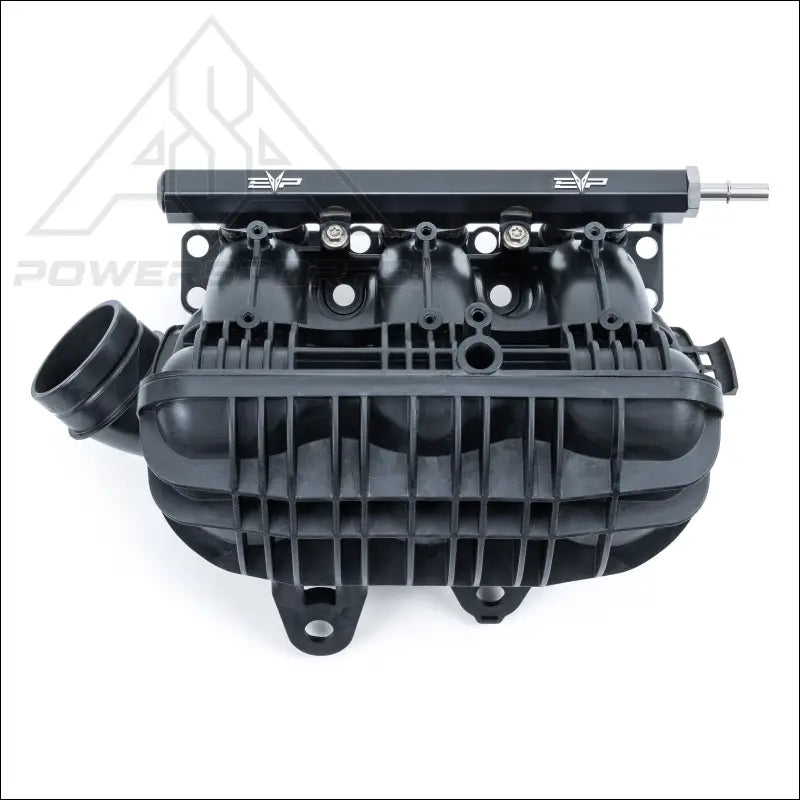 The OEM fuel rail is made from plastic with a long 3/8 SAE Male connection, which can fail under the torque of the chassis moving up and down. If the tip fails, raw fuel will spray all over the engine compartment which creates a severe fire risk. The EVP fuel rail is made from black anodized billet aluminum and is a 100% direct replacement with no other changes required. The aluminum construction virtually eliminates the possibility of failure. A Male 3/8 SAE ORB fitting is included, which mates to the OEM fuel hose without any modifications; however, the thread going into the rail is -8. This means the OEM fuel hose can be replaced with up to an- 8-size hose if needed. In addition, the other side of the fuel rail is also -8, which makes it easy to utilize a return-style fuel system, which is common on BITD/Score race cars. The EVP billet fuel rail has 30% more volume than the OEM which is very important with a short, dual injector per cylinder rail. This additional volume prevents the thirsty twin injector setup from cavitating under the high fuel flows that are common with E85 and big horsepower tunes.