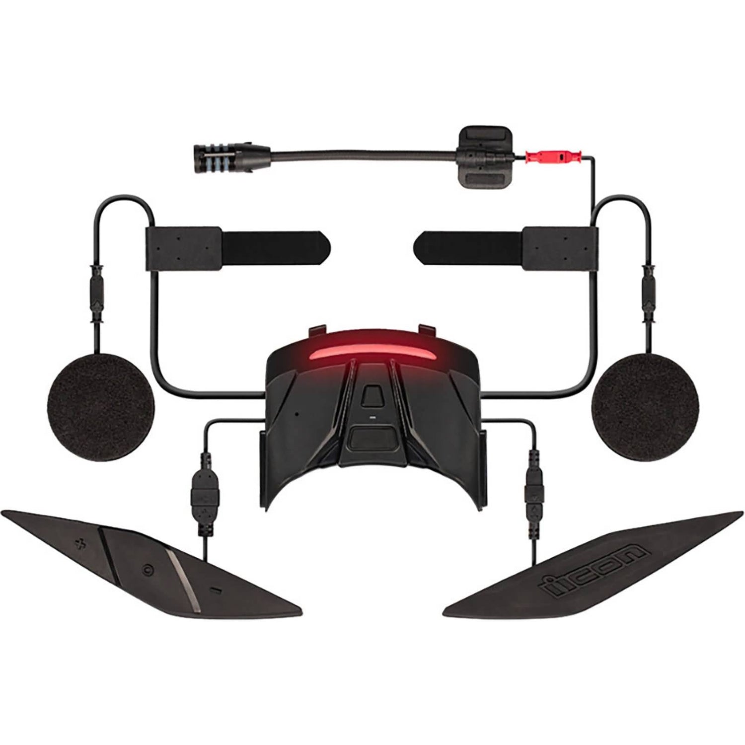 The HelmLink Communications System integrates seamlessly into the ICON Domain helmet and features the latest SENA technology. It features Bluetooth audio, voiceactivated digital assistant access, and OneClicktoConnect Mesh Intercom. Additionally, we've added a rearfacing light system with adaptive flash. The flushmounted controls install within specifically designed recesses inside the Domain helmet, providing a streamlined aerodynamic profile. In addition, the internal EPS foam is prechanneled for quick installation of HD speakers, boom microphone, and antennas.