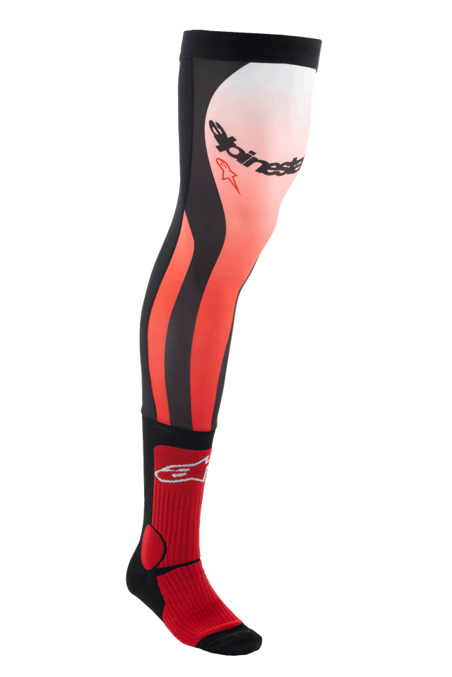 Specifically designed to be worn with the Alpinestars’ range of off-road boots and knee protection, the MX Long Knee Brace Socks feature a single layer compact construction for high levels of breathability and overall comfort. The socks have a stretch Lycra upper area that includes a mesh insert on the back of the upper leg, and an elasticated upper hem with internal silicon grip to keep the socks in place. The MX Long Knee Brace Socks provide enhanced rider comfort and fit, to MX riders that wear knee protection.